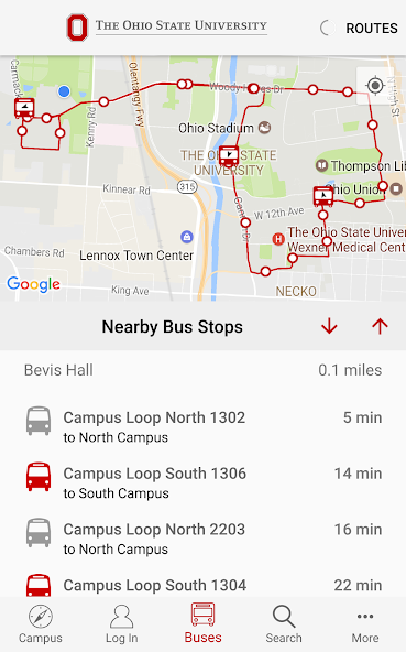 * أضف محطات الحافلات المفضلة في تطبيق Ohio State Android ، وشاهدها في تطبيق Wear الخاص بك