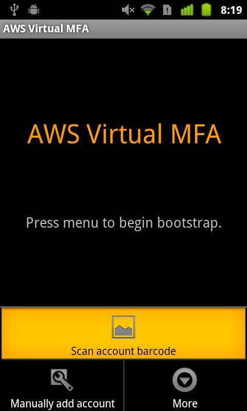AWS Virtual MFA هو تطبيق Android الذي يمكّنك من استخدام هاتفك الذكي كجهاز مصادقة متعدد العوامل مع مصادقة AWS متعددة العوامل (AWS MFA). هذه ميزة اختيارية لحساب Amazon Web Services (AWS) الذي يوفر زيادة الأمان عند الوصول إلى AWS. تتطلب هذه الميزة من المستخدم تقديم رمز مصادقة صالح يوفره جهاز MFA الخاص به ، بالإضافة إلى اسم المستخدم وكلمة المرور ، قبل أن يتمكنوا من تسجيل الدخول.