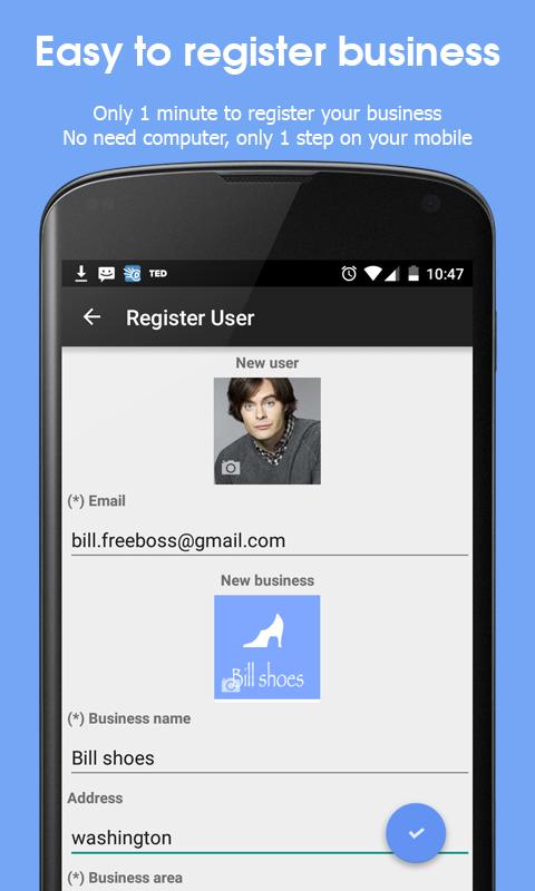 - قم بإعداد عملك في غضون بضع دقائق فقط في 3 خطوات بسيطة: أضف حسابًا تجاريًا ، وإضافة منتجات وإضافة موظفين.