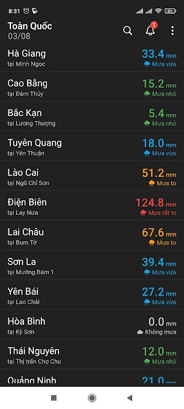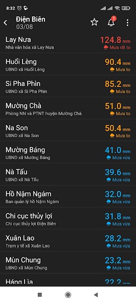 تتبع وتلقي الإخطارات على مستويات هطول الأمطار في فيتنام