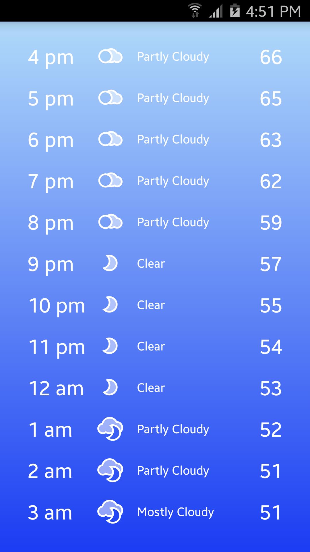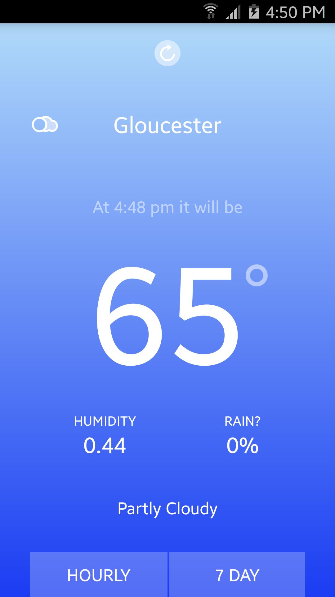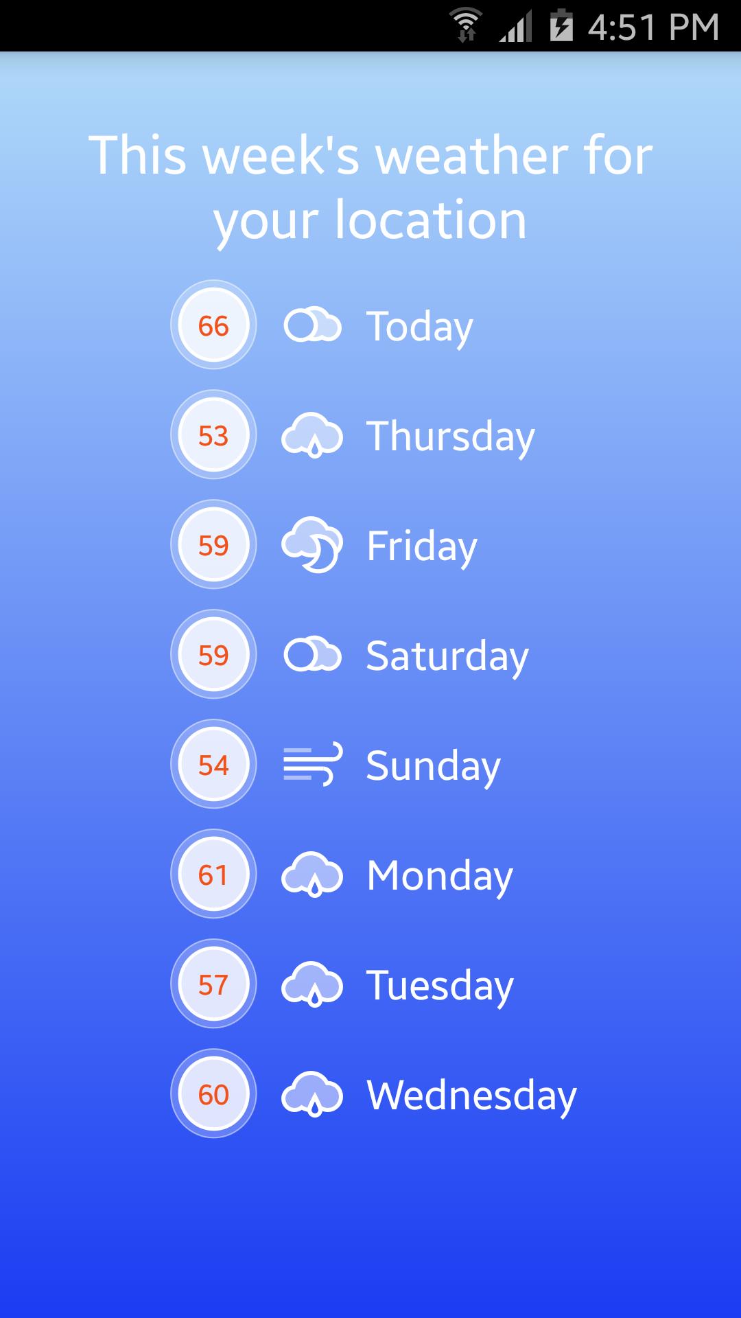Whatever the Weather ، فهو تطبيق بسيط للتنبؤ بالطقس الذي يمسك بموقع GPS الحالي ويعرض درجة الحرارة والرطوبة وظروف الطقس الحالية.