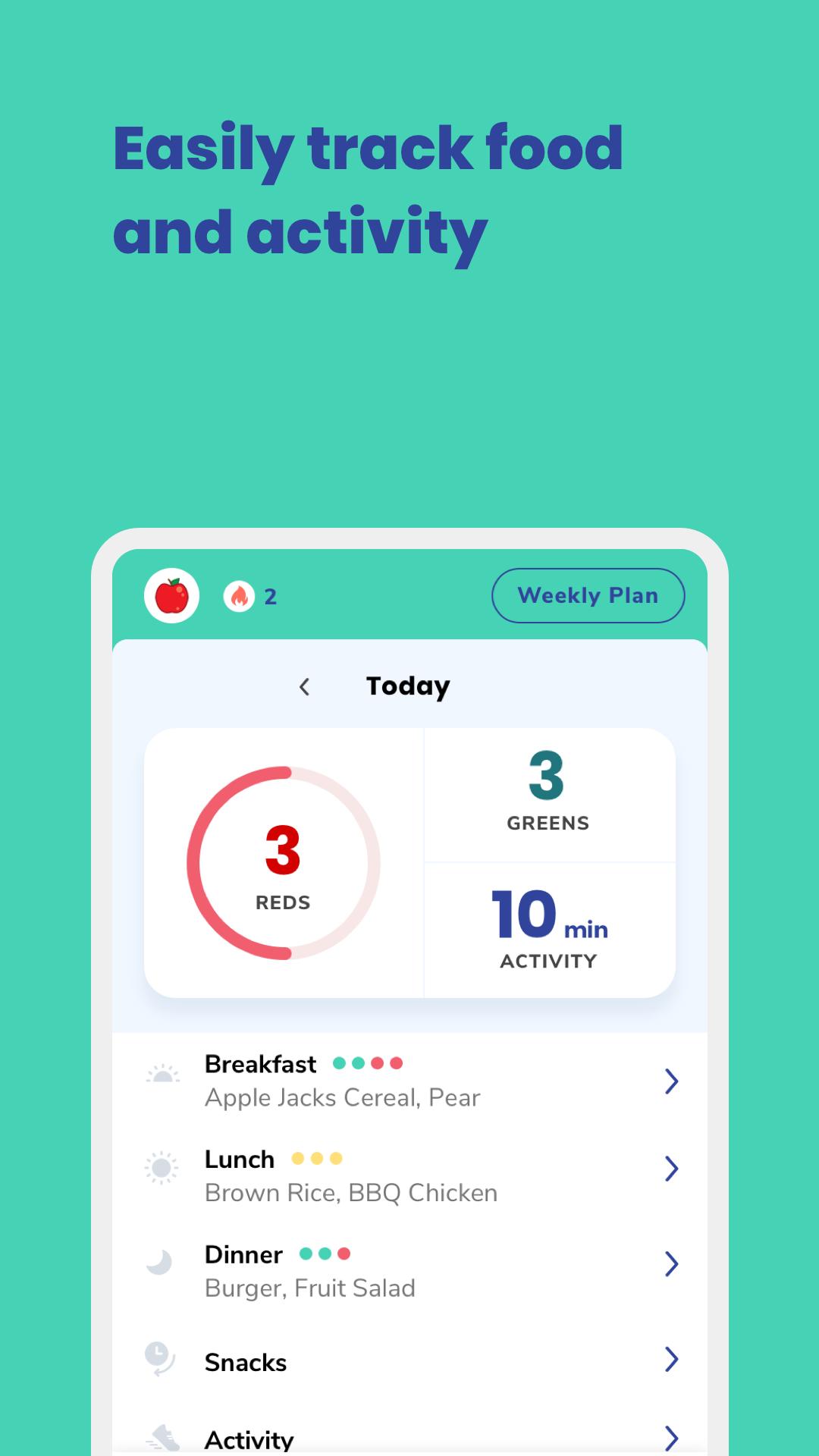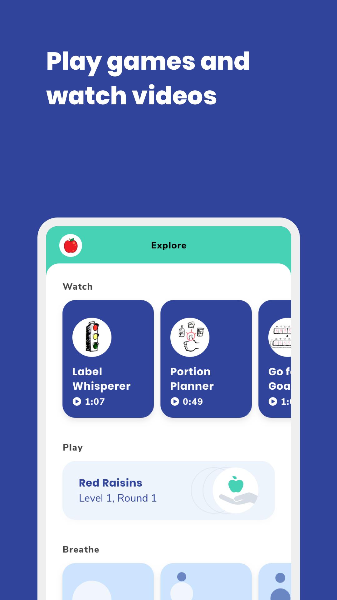 * الألعاب الممتعة والتحديات الأسبوعية: استمر في التعرف على التغذية والبقاء على المسار الصحيح بطريقة ممتعة ومثيرة.