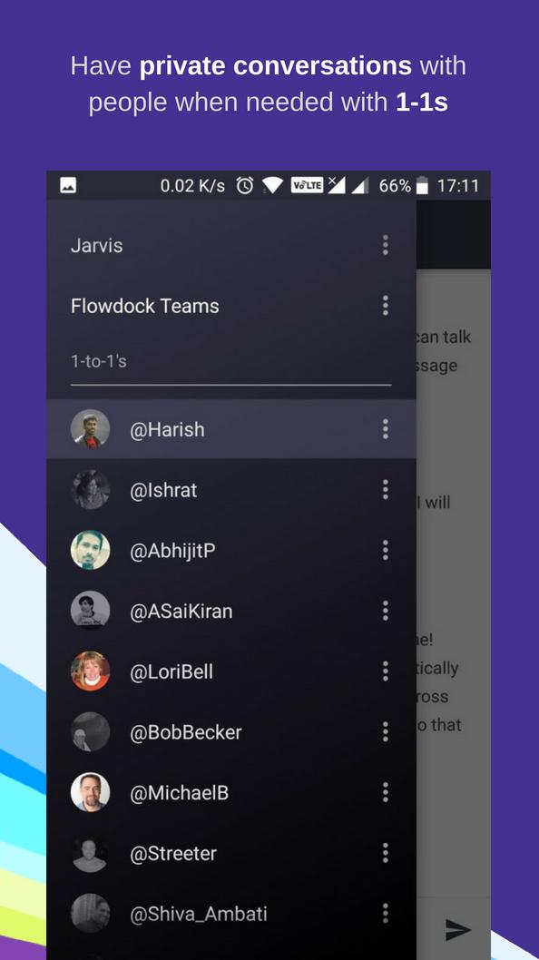 - تعاون مع أعضاء فريقك من خلال مشاركة الملفات عبر التدفقات و 1-1s