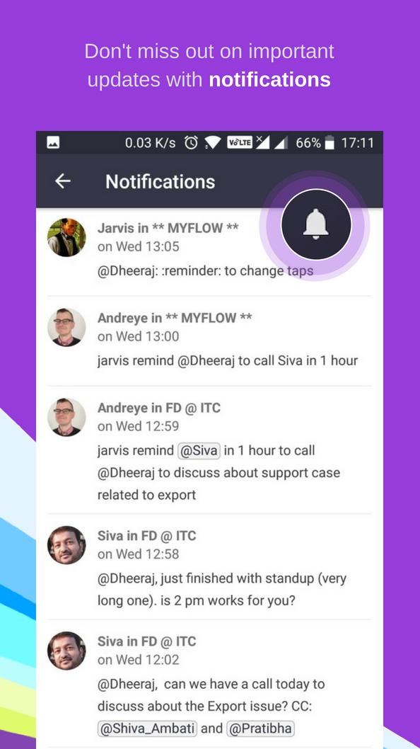 يحل محل الدردشة IM أو IRC في سير عمل فريقك ويتحرر صندوق البريد الخاص بك من رسائل البريد الإلكتروني الآلية. مع تكامل لأكثر من 80 أداة ، ستبقى دائمًا على اطلاع على ما يفعله فريقك.