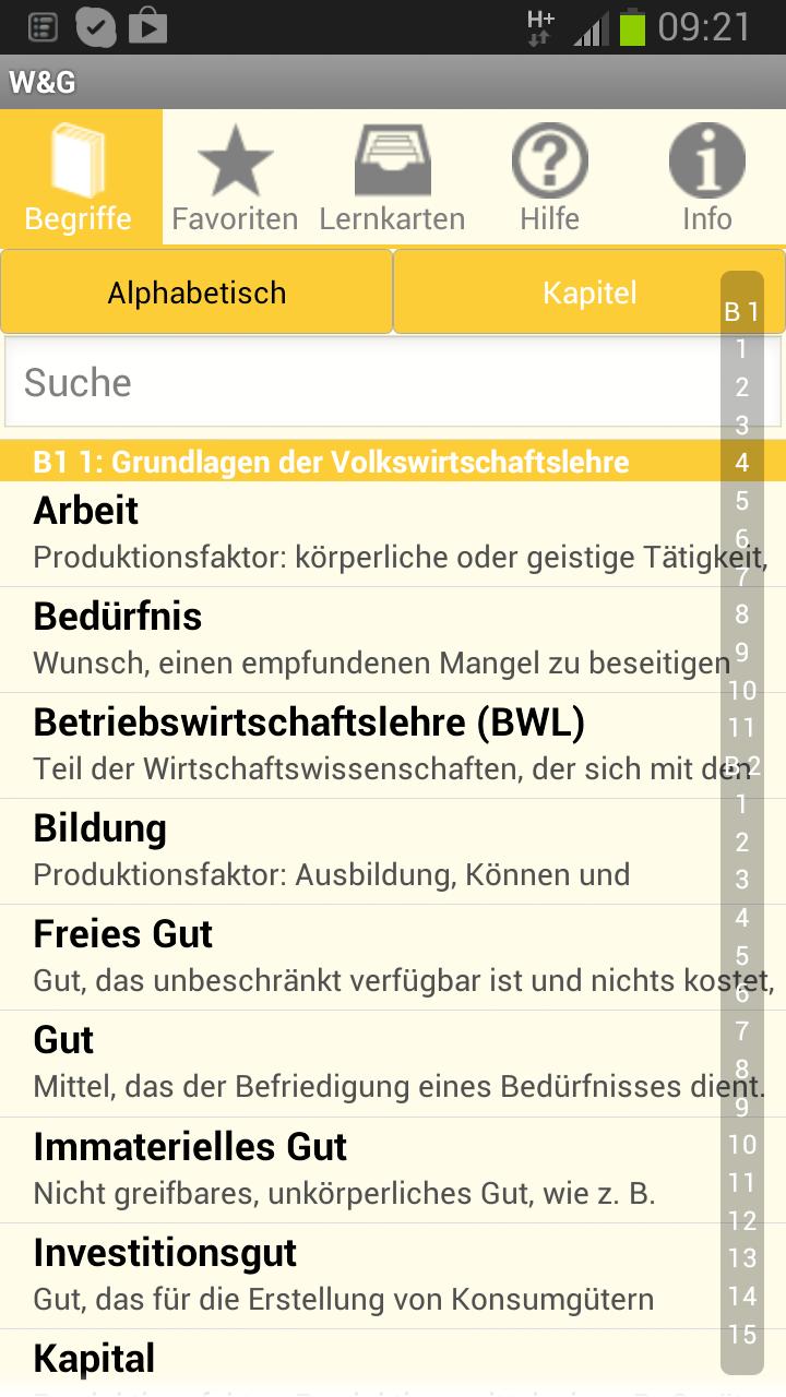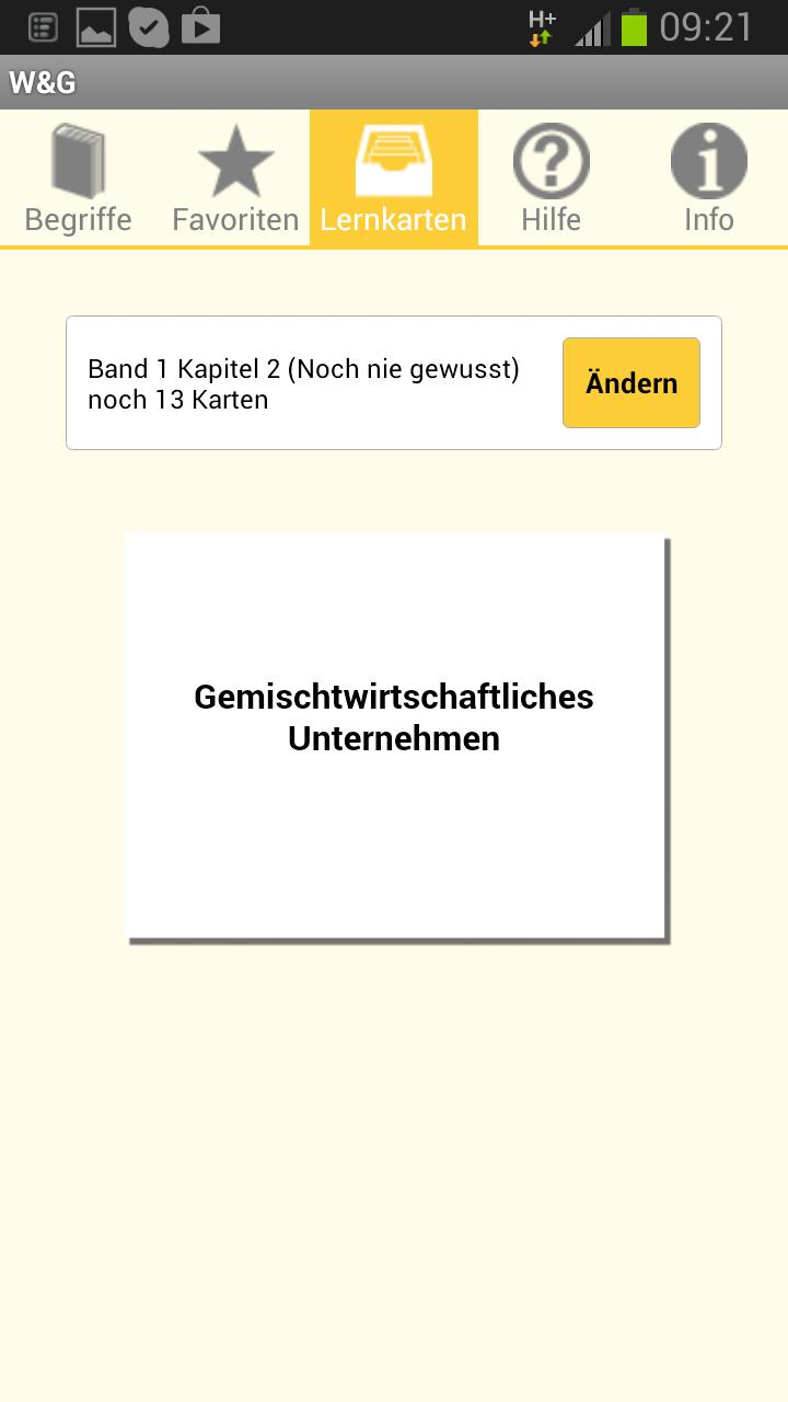 هذا التطبيق من الناشر HEP استنادًا إلى المواد التعليمية "W & G 1" و "W & G 2" و "W & G 3" بواسطة Alex Bieli (Eds.). أنه يحتوي على تعريفات المصطلحات الرئيسية - يتم فرزها أبجديًا أو بواسطة فصول. مع مفاهيم البطاقات التعليمية الرقمية يمكن تعلم وتكرار.