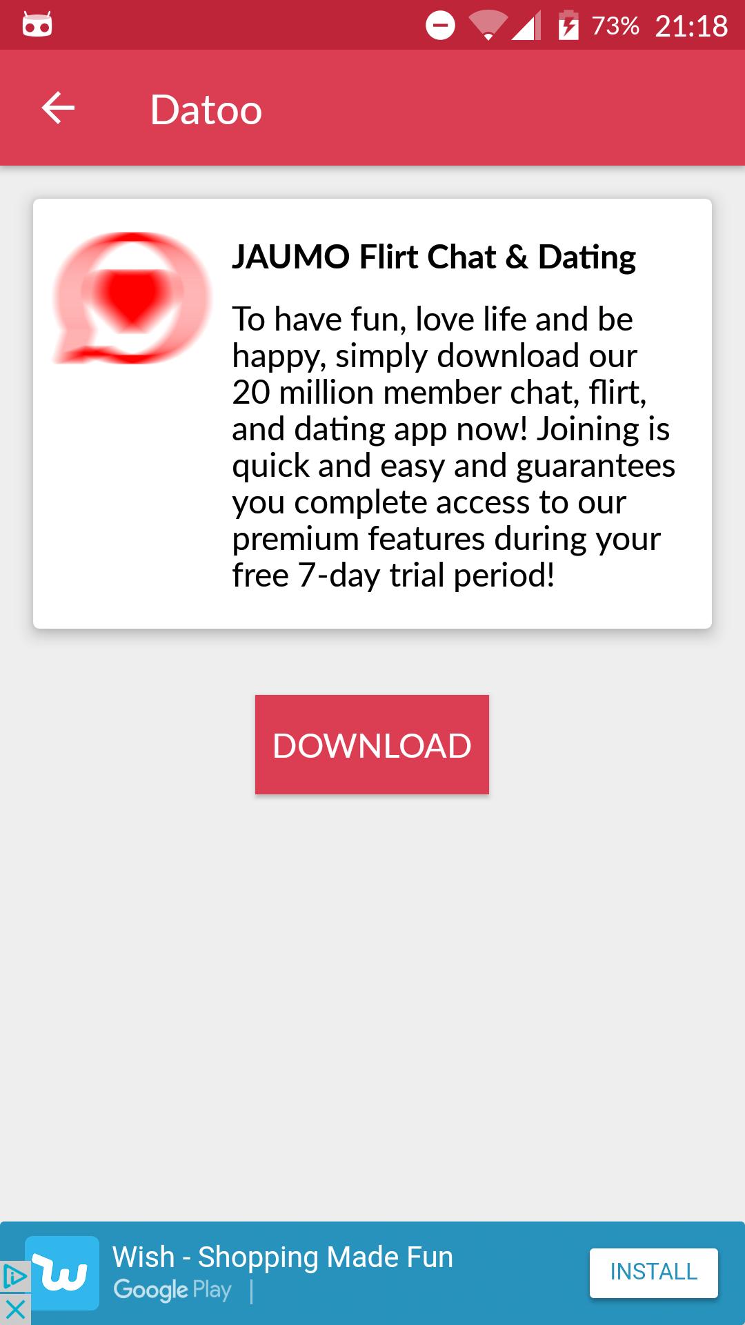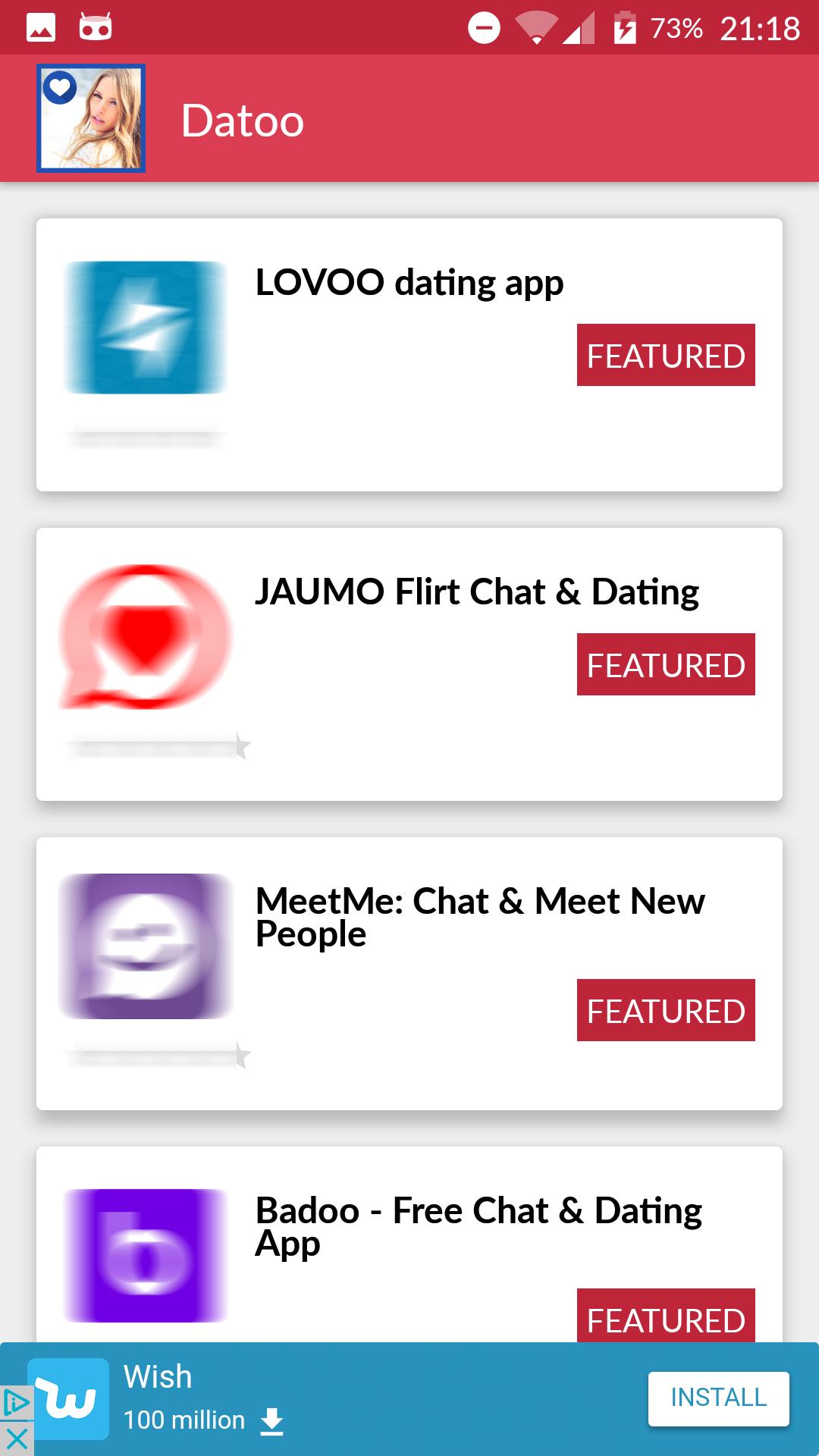 Disclaimer: DATOO is not a dating app, it is an app that allows users to discover and download apps with the aim of meeting new people. With apps listed you can find a lover or couple, meet singles or adult singles (cougars), have dates with mature (not teenagers) and more! If you are looking for the best dating apps free or sites online you're in the right place. God of love, do your job!