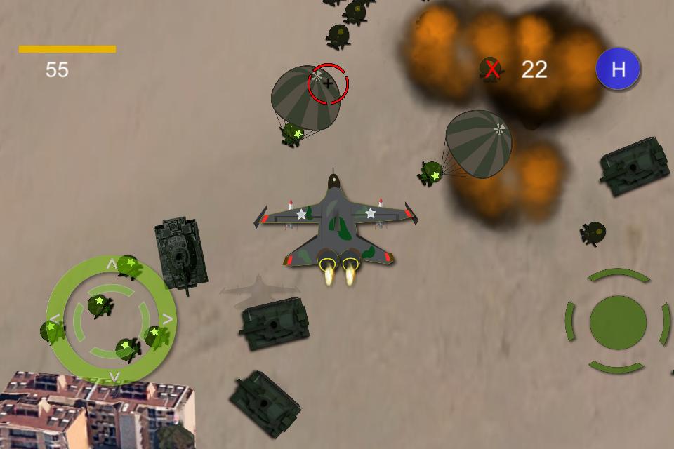 هجوم السلطة الجديد إلى المنطقة الشرقية ، وبعض بلدنا. مهمتك يجب أن تطير الطائرات لضربهم ودفعهم إلى الوراء من مدينتنا أو مساعدة قواتنا على القتال ، يجب عليك أن تضرب بسرعة قوات ودبابات العدو بأسرع ما يمكن أن تساعد قواتنا الدفاع عن القفز من الطائرة ، وسوف تساعدك على منع دبابات العدو والقوات. لا تدعهم يهاجمون مقرنا الرئيسي على الأرض. ثم سيحدث الكثير من الأشياء في ساحة المعركة