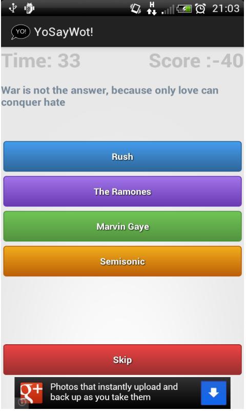تخمين Catchphrase ، اقتباس أو غنائي في لعبة الاختبار السريعة. YoSayWot .