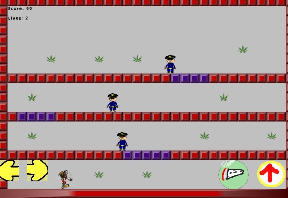 اللعبة التي تكون فيها Rastafarian عليك أن تحصل على جميع أوراق الماريجوانا هناك إلى المستوى التالي ، شاهد الشرطة