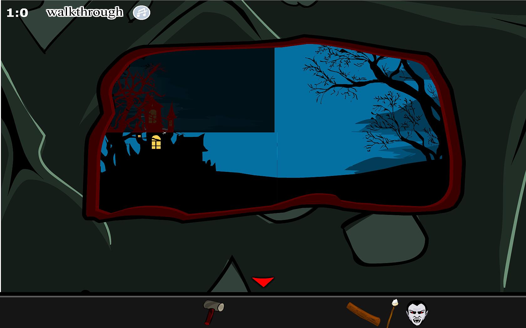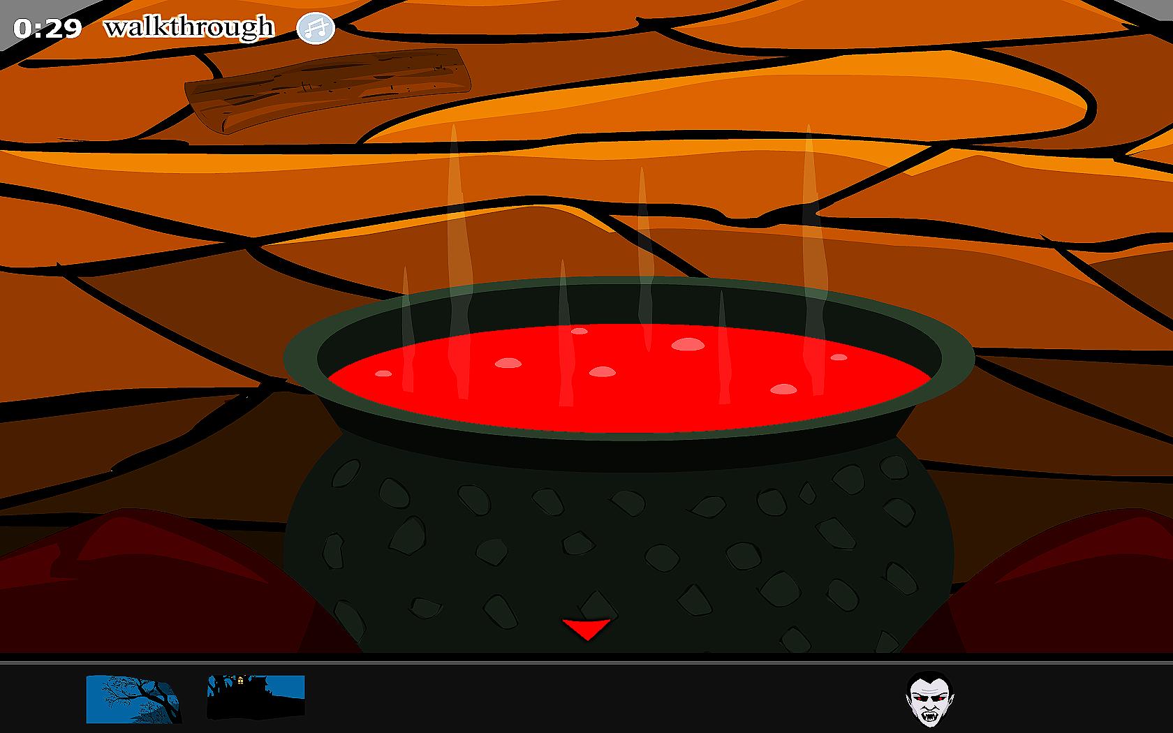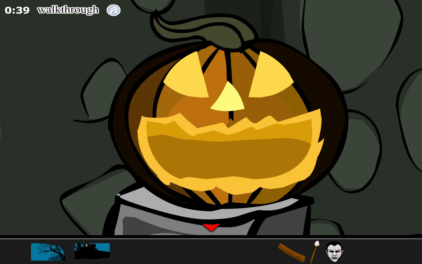 ضع جميع الأقنعة على الباب واحصل على الساق واليقطين والجمجمة. ضع كل الثلاثة في السفينة المحترقة. احصل على مفتاح من ذلك. استخدم المفتاح على ثقب المفتاح على اليمين للشمعة. احصل على عصا إطلاق النار من اليقطين على اليمين وأضيء في الشمعة. استخدم العصا المضاءة في الخفافيش واحصل على الفئران. امنح الفئران إلى العنكبوت والقط وحصل على سجلين.