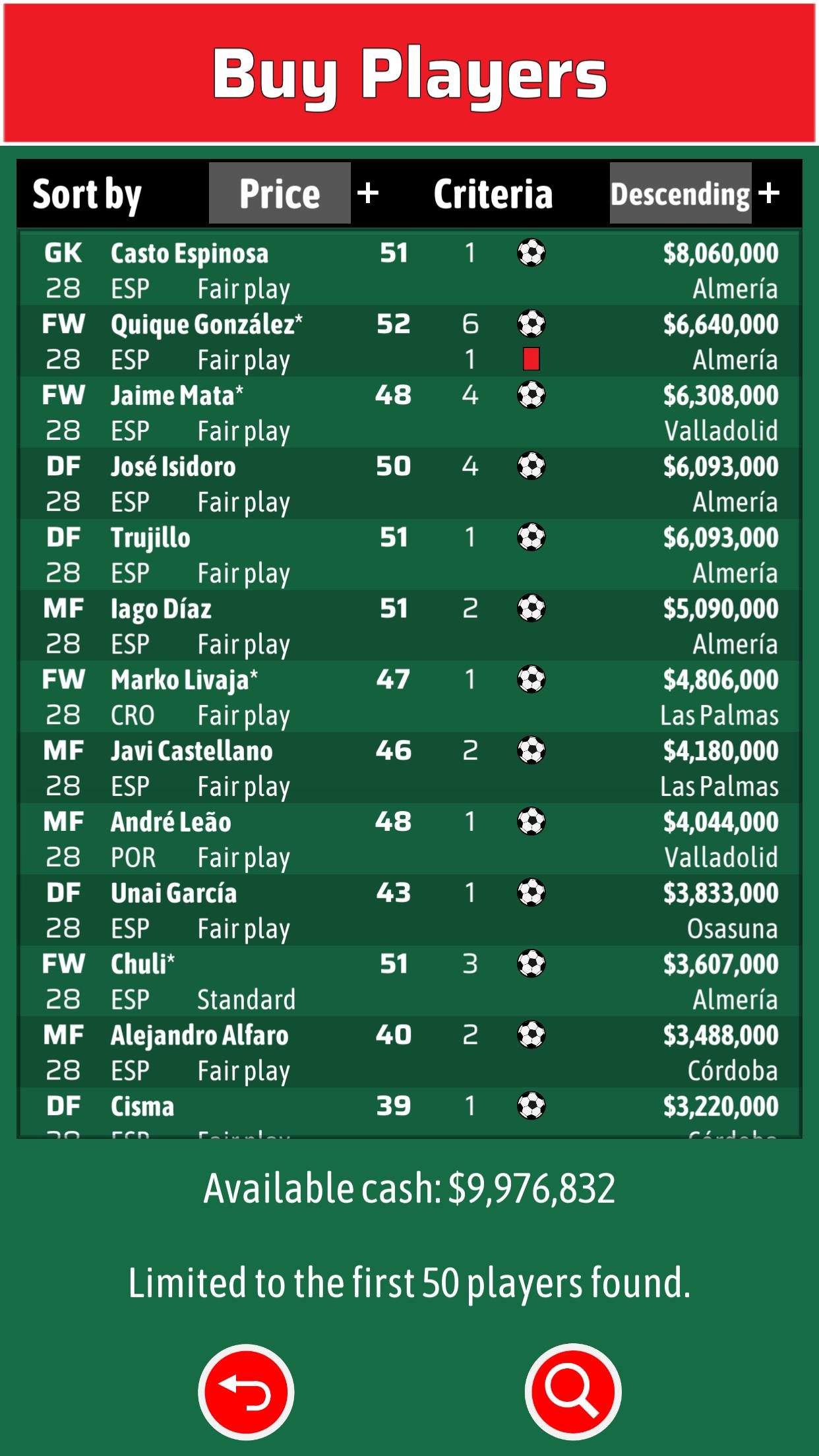 * إمكانيات البحث في سوق اللاعبين القوية. "