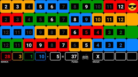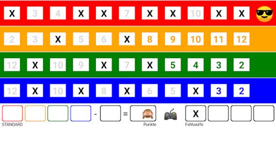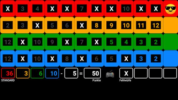 لا يمكن وضع الصلبان إلا من اليسار إلى اليمين. إذا وضع اللاعب صليبه على الرقم الأخير ولديه 6 تقاطعات على الأقل في هذا الصف ، فإنه يتلقى صليبًا إضافيًا في شكل مبتسم. إذا كان لديه أقل من 6 تقاطعات ، يتم إغلاق الصف الملون برمز قفل ولا يتلقى اللاعب تقاطعًا إضافيًا.