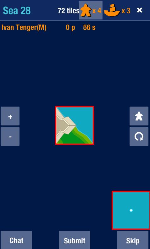 هناك 74 بلاط لوضع. لديك 4 Meeples و 3 سفن.