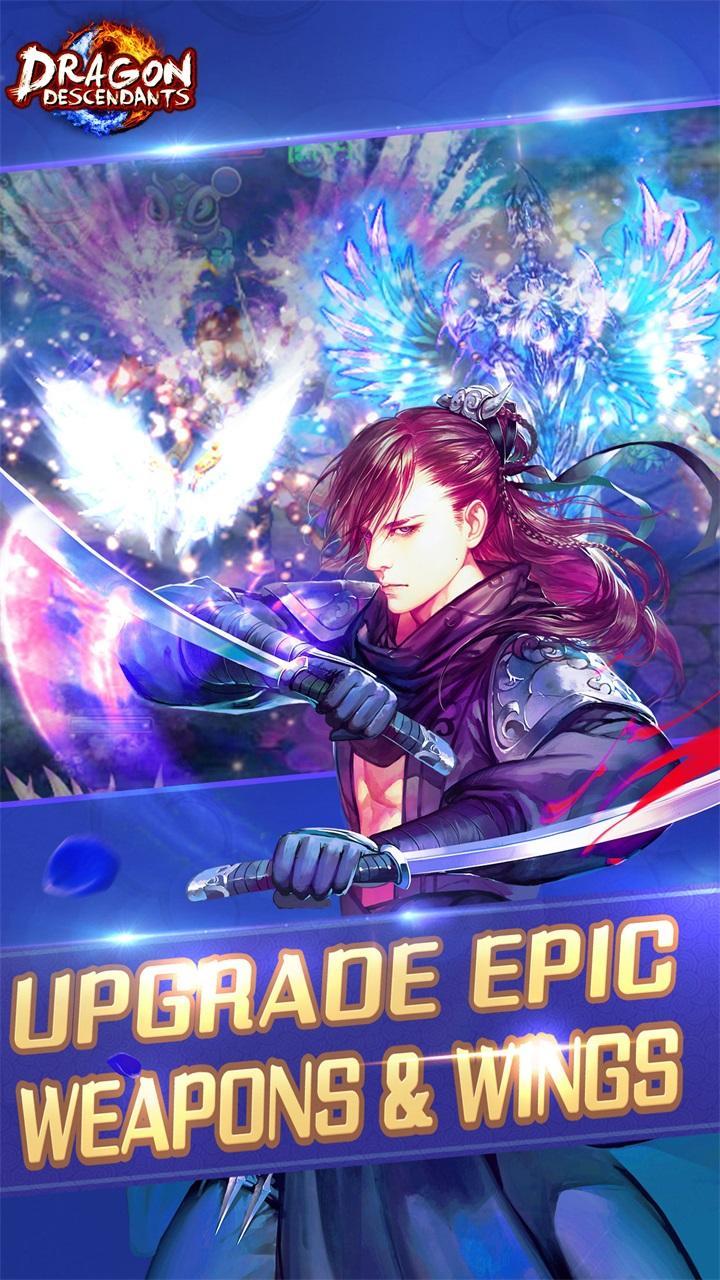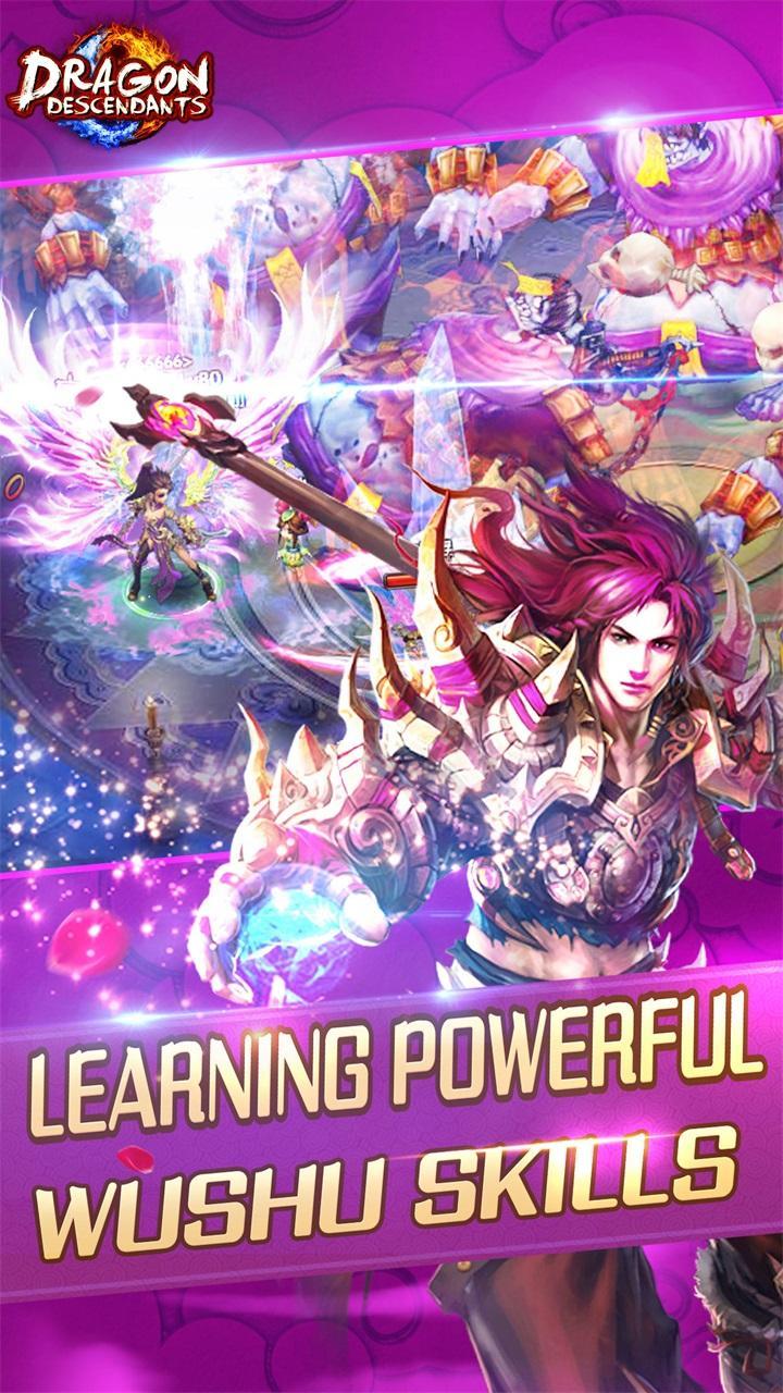 Dragon Descendants هي لعبة تتألف من أوضاع المعركة القائمة على الوقت النشط. خلفيتها هي فنون القتال الشرقية. من خلال تدريب شخصيتك الرئيسية وتعزيز الدعائم العديدة الخاصة بك ، ستكون Grandmaster.