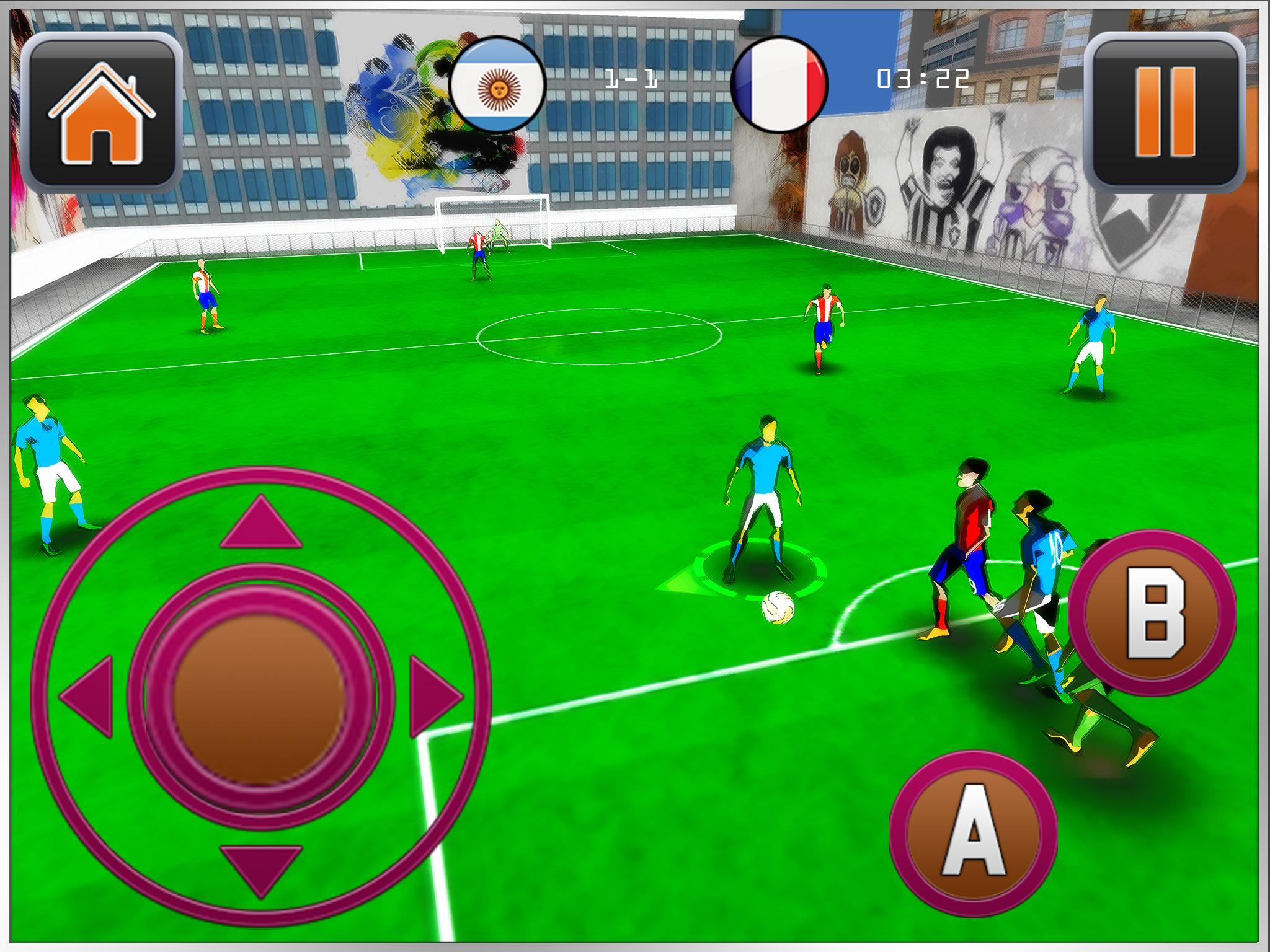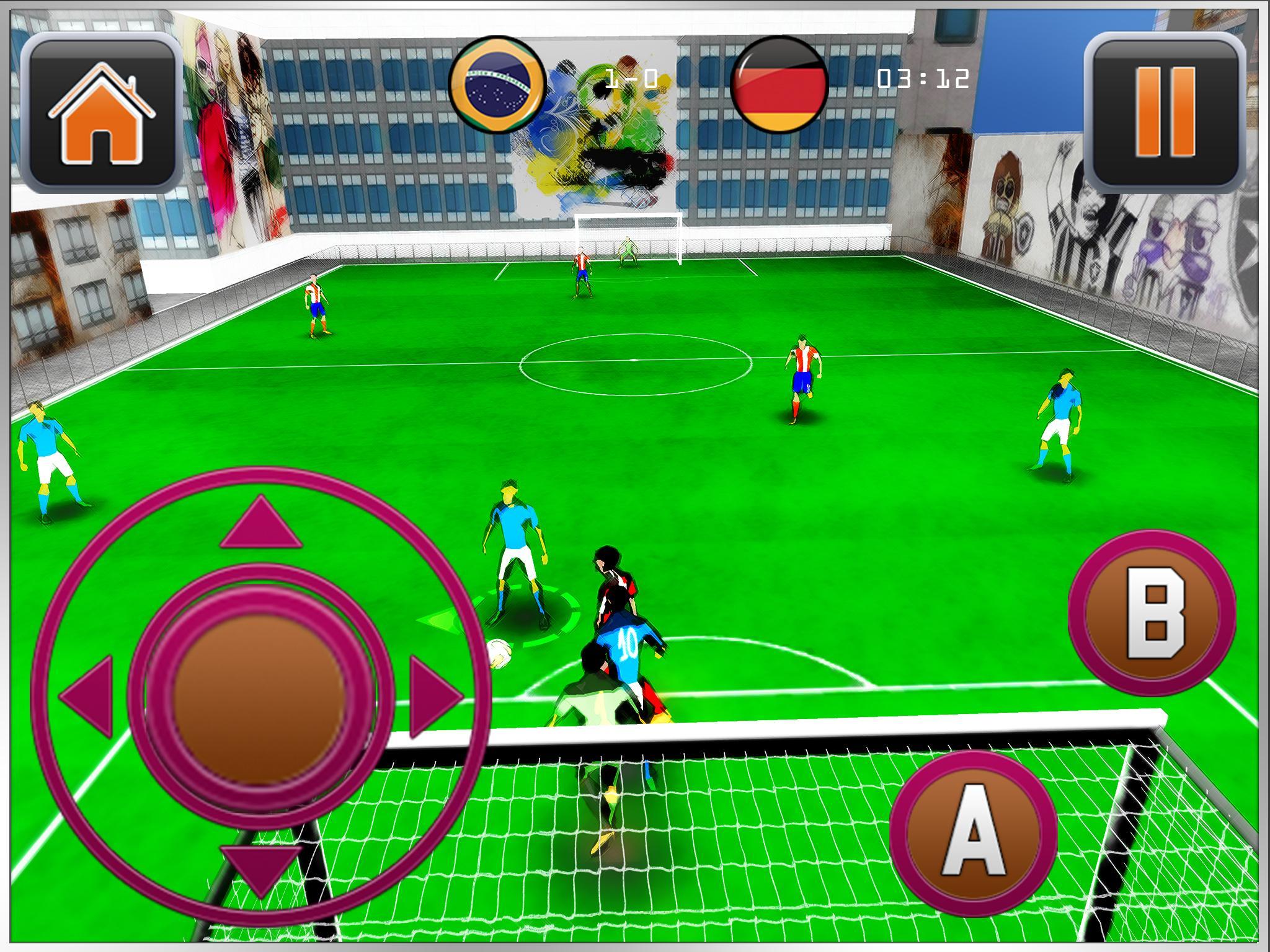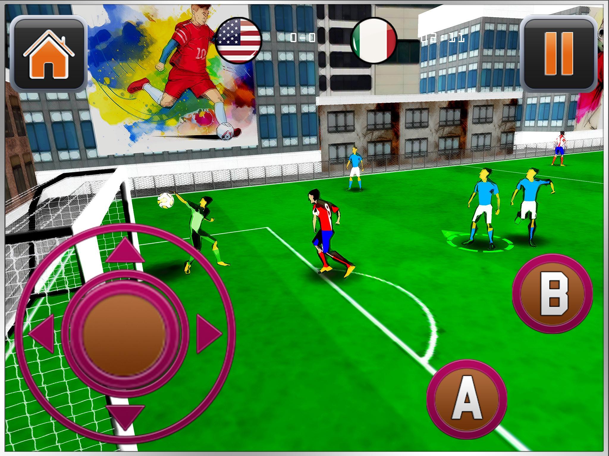 الرسومات المذهلة والثلاثي الأبعاد مع أصوات مثيرة ستأخذك إلى مباريات كرة القدم الحقيقية في الشوارع. احصل على الشهرة من الجمهور والهدف بقوة واستمتع بالتصفيق من جمهورك المفضل. كن أبطال كرة القدم في الشوارع في عام 2017.