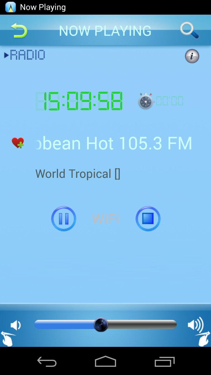 Wenn Sie die App verlassen, während ein Radiosender noch aktiv ist und abgespielt wird, wird in der Benachrichtigungsleiste eine kleine Musiknotiz angezeigt. So können Sie zur App zurückkehren und entweder anhalten oder den Sender wechseln. Die App wird nicht im Task-Manager aufgeführt.