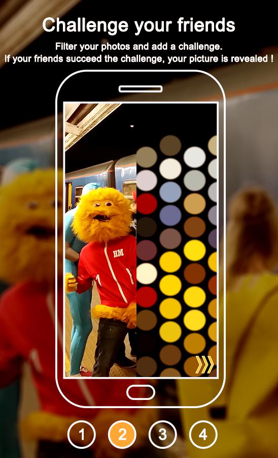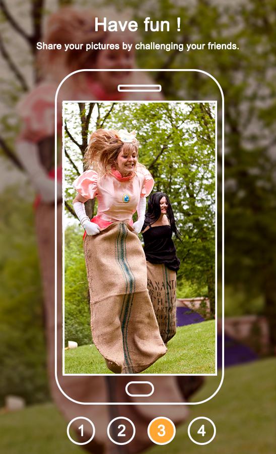 Mit Winpic können Sie ein Foto senden, indem Sie eine Herausforderung (allgemeines Wissensquiz für Exemple) anbringen. Wenn Ihre Freunde die Herausforderung Erfolg haben, wird das Bild enthüllt. Wenn sie scheitern ... können sie Sie immer bitten, eine zweite Chance zu haben!