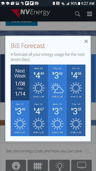 Die mobile App von NV Energy bietet ein erweitertes, personalisiertes digitales Erlebnis basierend auf Kundenfeedback. Neue und verbesserte Funktionen erleichtern es den Kunden, sich mit ihrem Fingerabdruck anzumelden, ihre Rechnung zu bezahlen, ihren Energieverbrauch zu verstehen, sich für Energiewarnungen anzumelden und sich für geldsparende Produkte und Dienstleistungen anzumelden. Die App enthält ein verbessertes Ausfallzentrum, das Einzelheiten zu einem Ausfallort und Ursache enthält und die Kunden melden und Ausfallaktualisierungen erhalten.