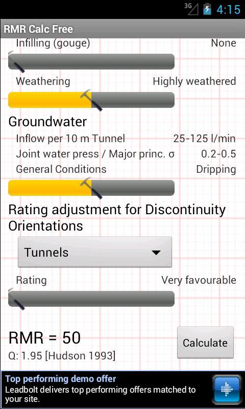 Die Anwendung namens RMR Calc gibt den RMR -Wert (RMR) und seine Klassifizierung basierend auf Bieniawski (1993) zurück.