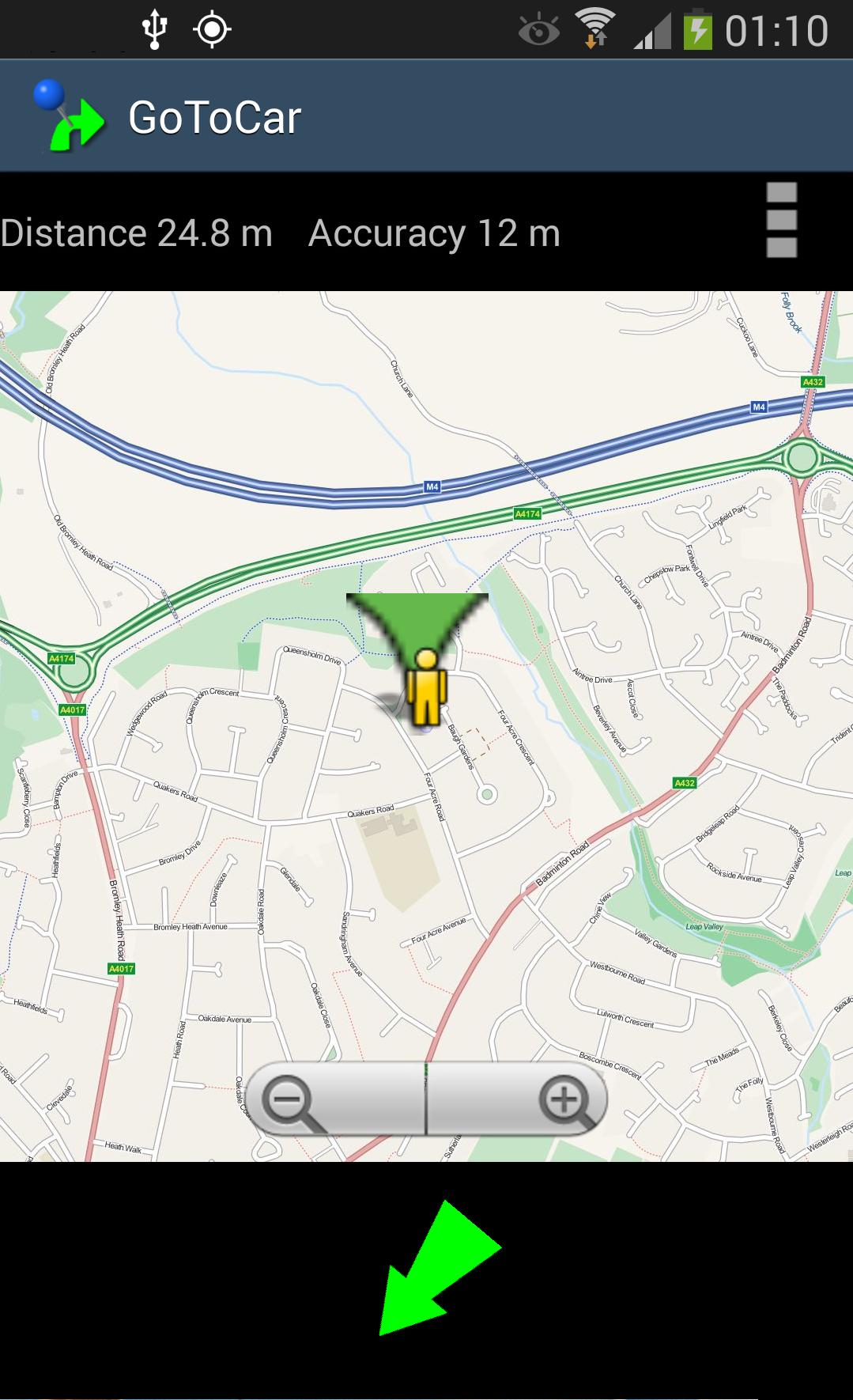 Um zu Ihrem gespeicherten Standort zu gehen, folgen Sie einfach dem grünen Pfeil.