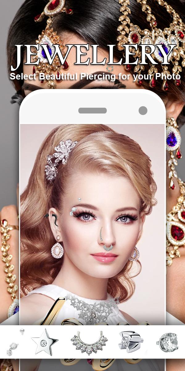 Woman Jewelry Photo Editor hat Ihnen die Möglichkeit gegeben, super Kawaii mit hundert Frauenschmuckeffekt / Halskette / Stirn / Krone / Ohrringe / Augenbrauen / Wimpern / und viele Aufkleber auszusehen ...