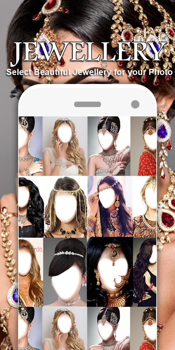 Möchten Sie wie eine Prinzessin jetzt mit Woman Jewelry Photo Editor -Anwendung aussehen, die Sie hinzufügen können: Schmuckeffekt, Halskette, Stirn, Krone, Ohrringe, Augenbrauen, Wimpern