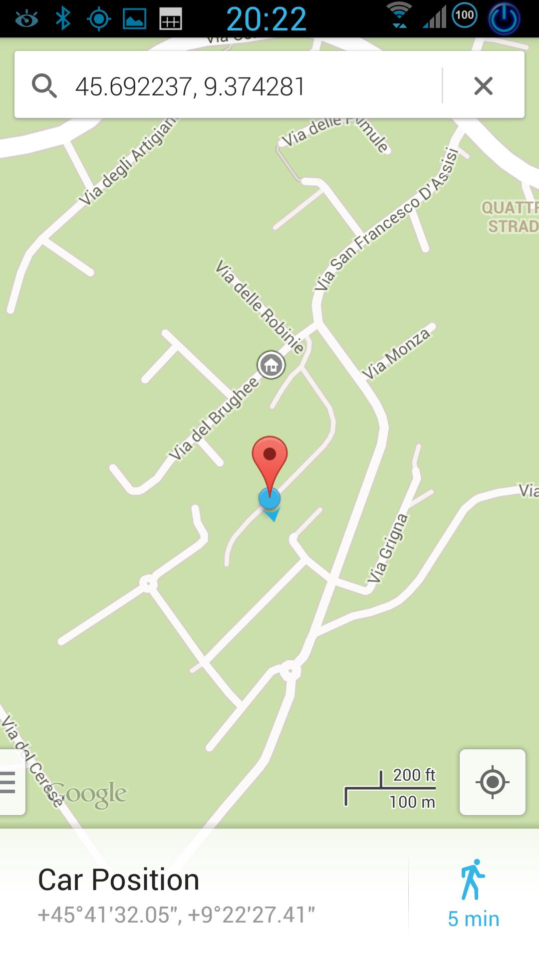 1) Aus dem GPS -Signal befindet sich das Auto in einem Radius von 2 Fuß aus der Autokosition.