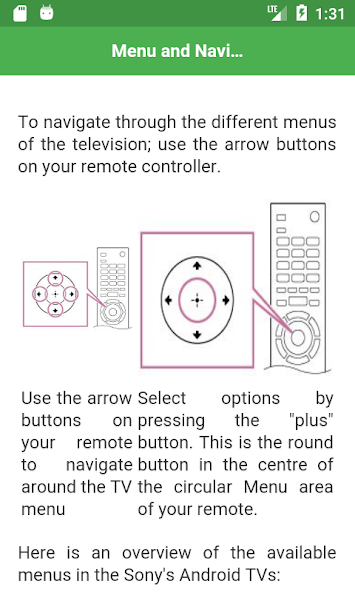 Benutzerhandbuch für Sony Android Television. Essentielles inoffizielles Handbuch für Ihren Fernseher. Ihr Smart -TV wurde gerade schlauer. Denken Sie an die Erfahrungen, die Sie auf Ihrem Smartphone oder Tablet lieben. Genießen Sie sie jetzt größer und besser als je zuvor auf Bravia. Aus dieser App können Sie einen wesentlichen Setup -Handbuch sowie Tipps und Tricks lernen.
