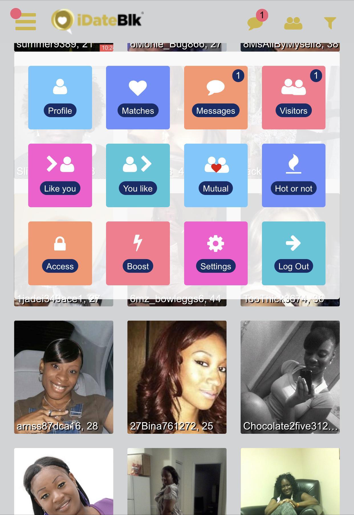 Müde, die Black -Dating -App nach der schwarzen Dating -App herunterzuladen und nach diesem besonderen Menschen zu suchen? Suchen Sie nach einer zuverlässigen Quelle, um einzelne Schwarze in Ihrer Nähe zu treffen? Nun, schau nicht weiter. Wir haben iDateBlk ausschließlich für schwarze Einzelpersonen erstellt, die sich ernsthaft verabreden wollen. iDateBlk verfügt über einen komplexen Matching -Algorithmus, der den Prozentsatz des Zufalls unter zwei Benutzern im Profil des Benutzers zeigt, um den Übereinstimmungsprozess nahtlos zu machen. Wir haben auch eine Reihe kostenloser Funktionen und Premium -Funktionen erstellt, die bei Ihrer Suche nach schwarzen Liebe helfen.