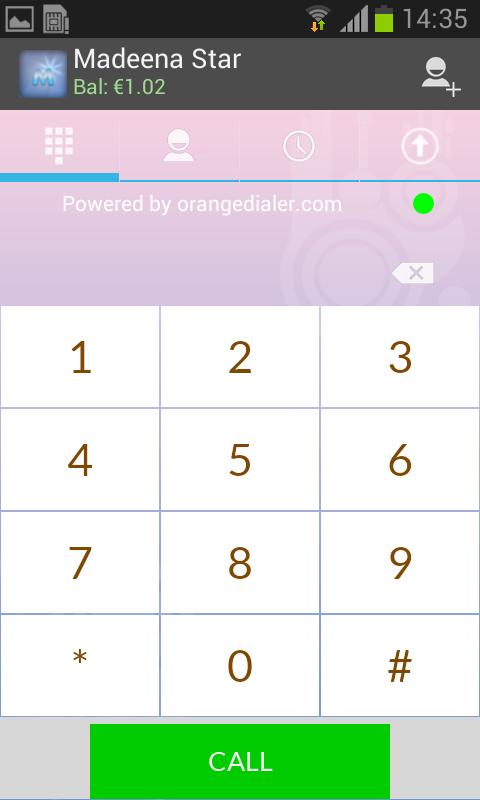 Madeena Star ermöglicht es, VoIP-Anrufe von einem der Android-Geräte zu tätigen, und es verwendet 3G/Edge/Wi-Fi-Internetkonnektivität. Es ist kristallklares Sprachqualität, der den Unterschied des Dienstes spürt.