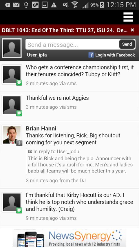 Die kostenlose Sport -App von Lubbock, Texas, die Sie suchen, ist da! Bleiben Sie auf dem neuesten Stand der Texas Tech Red Raiders, Big 12, Dallas Cowboys, Texas Rangers, Frensship Tigers, LISD Sports und anderen Gebietsportarten aus den South Plains, Texas und der Nation. Sehen Sie sich Videos an, senden Sie Ihre Nachrichten -Tipps und interagieren Sie alle mit der DoubleT1043 -App.