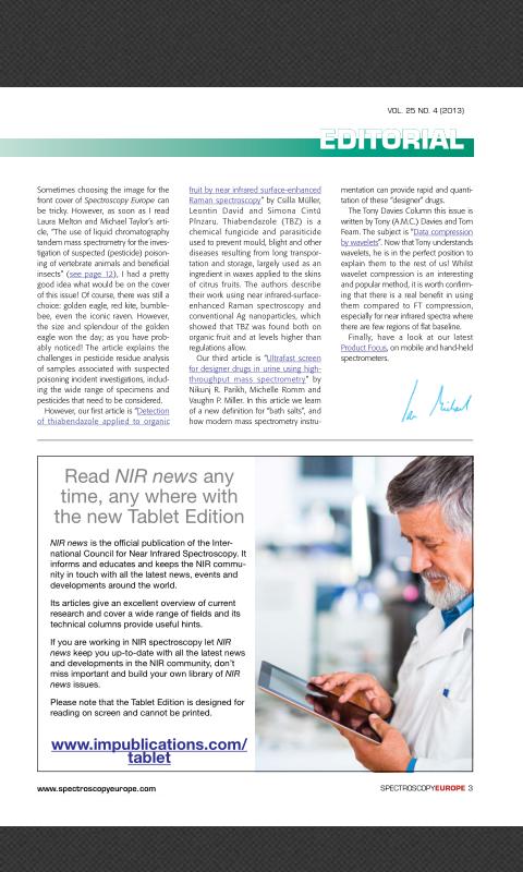 Spectroscopy Europe ist seit 1975 eine wertvolle, kostenlose Ressource für die europäische spektroskopische Gemeinschaft. Sie ist sowohl in gedruckter, digitaler und Webausgaben als auch in dieser App erhältlich, sodass Sie auswählen können, welche Sie bevorzugen. Um ein kostenloses Druckabonnement zu beantragen, besuchen Sie bitte http://www.spectroscopyeurope.com/register.