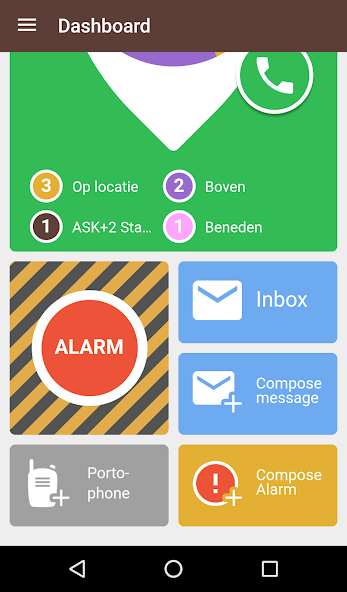 StandBy überwacht die Anwesenheit der StandBy -App das Vorhandensein von Eros und anderen Sicherheitspersonal wie Ersthelfern und Sicherheitsagenten. Dies kann verwendet werden, um zu verfolgen, ob eine ausreichende Anzahl von Personalnutzungen berücksichtigt wird. Das vorliegende Sicherheitspersonal wird auf einem Bildschirm angezeigt, beispielsweise an der Rezeption, was manuelle Fehler verhindert. Es ist auch möglich zu bestimmen, welche EROs sich in der Immobilie befinden. Im Notfall kann das nächste Mitarbeiter des Sicherheitspersonals alarmiert werden.
