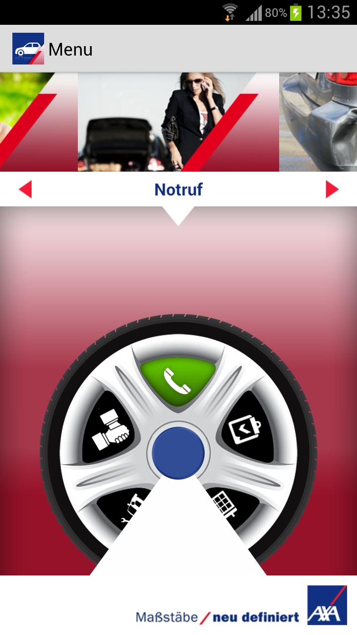 Die "Auto und Unterwegs" App von AXA bietet Ihnen schnelle und kompetente Hilfe in Situationen, wenn es darauf ankommt! Passend zum Themenfeld "Auto" führen Sie einfache Drehbewegungen auf einer Autofelge (per Tab individualisierbar!) zur gewünschten Funktion - vom europaweiten Notruf über Erste-Hilfe-Tipps bis zur kompletten Schadenmeldung. Die AXA App bietet Ihnen nützliche Hilfestellungen in Unfallsituationen mit Ihrem Fahrzeug: So können Sie europaweit direkt länderspezifisch hinterlegte Nummern von Polizei oder Krankenwagen wählen und wichtige Sekunden sparen! Außerdem erhalten Sie wertvolle Tipps zur Ersten Hilfe vor Ort. Auch der Pannendienst von AXA und die AXA Schadenhotline sind telefonisch direkt anwählbar. Darüber hinaus können Sie den Schaden überall und unkompliziert direkt per E-Mail an AXA melden - sofort von der Unfallstelle oder natürlich auch erst später, wenn der erste Stress vorbei ist. Sie werden einfach durch die nötigen Angaben navigiert und können nichts vergessen. Selbstverständlich können Sie jederzeit Änderungen und Ergänzungen an Ihrer ersten Schadenmeldung durch Anruf bei AXA, per E-Mail oder Post vornehmen. Funktionen der Schadenmeldung: Mit der App "Auto und Unterwegs" können Sie - alle relevanten Daten eines Unfalls eingeben, - Ihren Standort per GPS ermitteln, - Fotos von der Unfallsituation erstellen, - den Schaden an Ihrem und eventuell eines anderen Fahrzeugs per Anklicken auf einer Fahrzeugskizze aufgeben, - sich durch ein Unterschriftenfeld identifizieren, - per Klick die gesamte Schadenmeldung an AXA mailen, die dann schnellstmöglich mit Ihnen Kontakt aufnimmt und sich um die Reparatur Ihres Fahrzeugs kümmert. Die AXA App hilft Ihnen den Schaden schnell zu vergessen! Zusätzlich in der App enthalten ist die Werkstattsuche mit der Möglichkeit über die Hotline von AXA einen Termin zu vereinbaren. Des weiteren finden Sie in der App einen Kalender, mit dem Sie alle Kfz relevanten Termine ablegen (z.B. nächste TÜV- oder Hauptuntersuchung) und sich erinnern lassen können! Finden Sie zudem bei "Das PLUS von AXA" echte Angebote rund um das Thema Mobilität. Um Datenmissbrauch vorzubeugen, haben wir Ihr Profil durch ein Passwort geschützt. Die Funktionen der AXA App im Überblick: - Direktanwahl von Notruf und Polizeiruf europaweit - Direktanwahl Pannendienst europaweit - Online-Schadenmeldung - Telefonische Schadenmeldung - Direktanwahl AXA Glaspartner-Hotline - Informationen zum schadenservice360° Auto - Erste-Hilfe-Anleitung nach einem Unfall - Taschenlampe mit visuellem und akustischen SOS-Signal - Kalender mit Erinnerungsfunktion - Informationen zu den Online-Mehrwertseiten "Das PLUS von AXA" - Werkstattsuche mit Terminvereinbarung über die Hotline von AXA