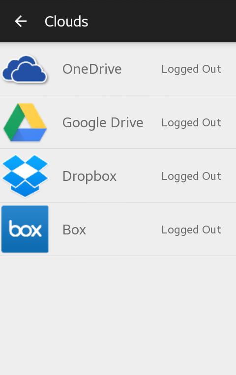 Clouds ist ein Multi -Cloud -Manager, der auf vier wichtige Cloud -Speicherkonten zugreift, darunter Google Drive, Dropbox, Box und OneDrive. Anstatt vier verschiedene Apps zu haben, ermöglicht diese App Benutzern das Hochladen/Herunterladen und Anzeigen aller Dateien von einer einzelnen App in einer intuitiven Oberfläche.