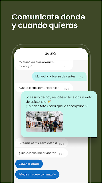 ● Sprechen Sie mit Ihrem Unternehmen, um Feedback zu senden: Fragen, Vorschläge, Abfragen oder was auch immer in den Sinn kommt; Mit der Überwachung von Gesprächen über Chat und Assistent zum Senden des Chatbot -Typs