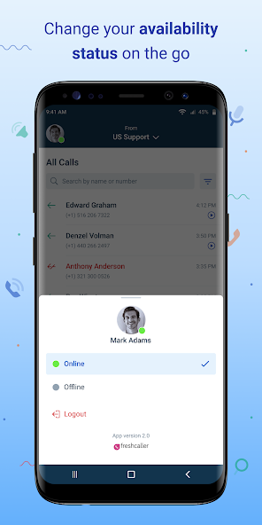 Geben Sie mit der Freshcaller mobilen App Ihren Kunden auch in der unterwegs. Ihr Telefonsystem ist in der Tasche! Die intelligent gestalteten Funktionen dieser App helfen Ihnen dabei, jeden Anruf, der Ihnen in den Weg kommt, und die Probleme Ihrer Kunden dann und dort zu lösen.