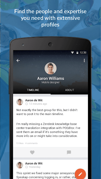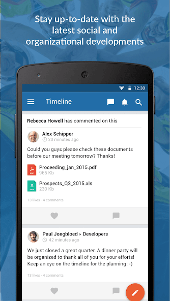 Teilen Sie neue Kenntnisse, Ideen und interne Leistungen schnell und einfach mit dem Rest Ihres Teams, Ihrer Abteilung oder Ihrer Organisation. Bereichen Nachrichten mit Bildern, Videos und Emoticons an. Behalten Sie einfach neue Beiträge Ihrer Kollegen, Organisation und Partner im Auge.
