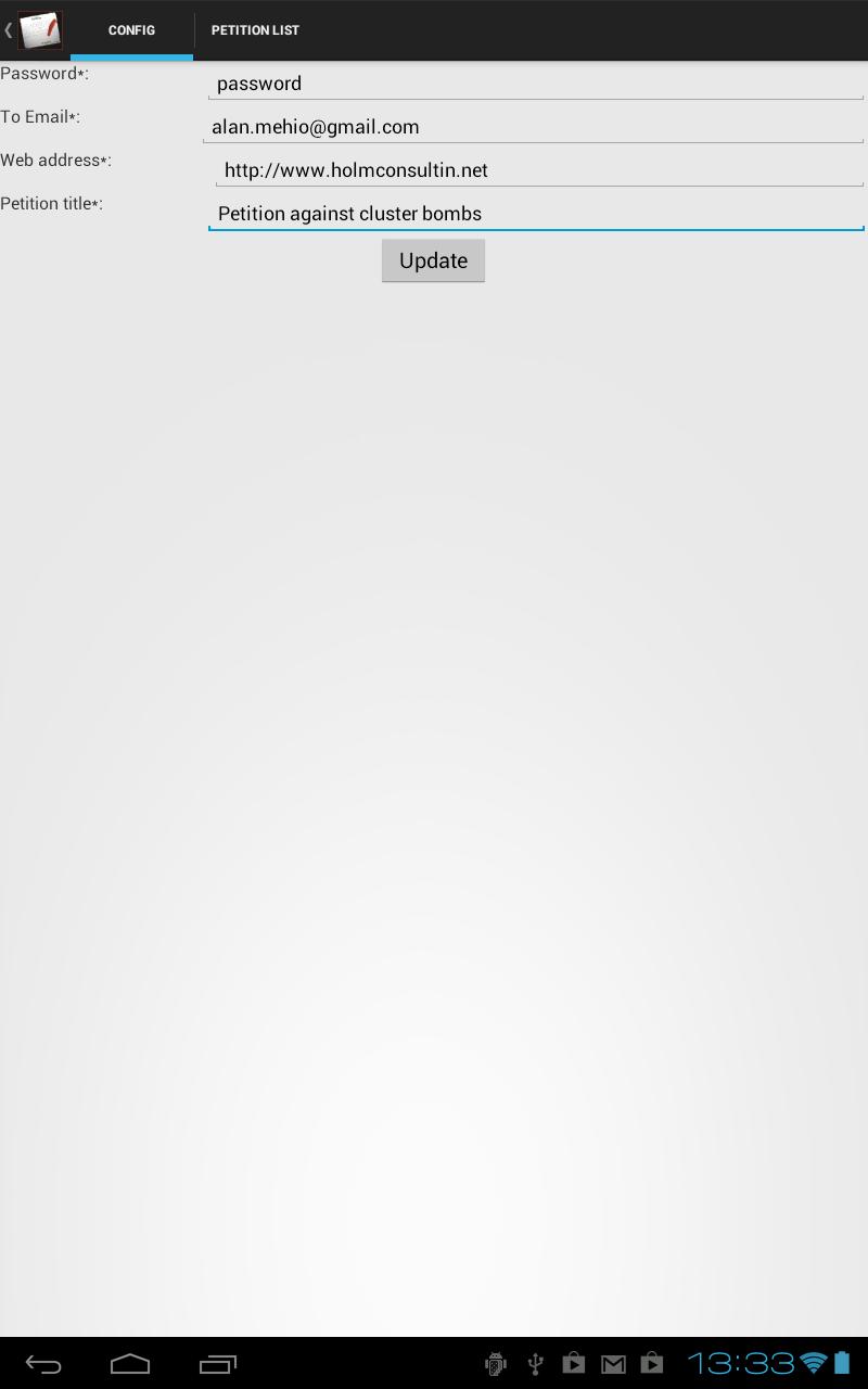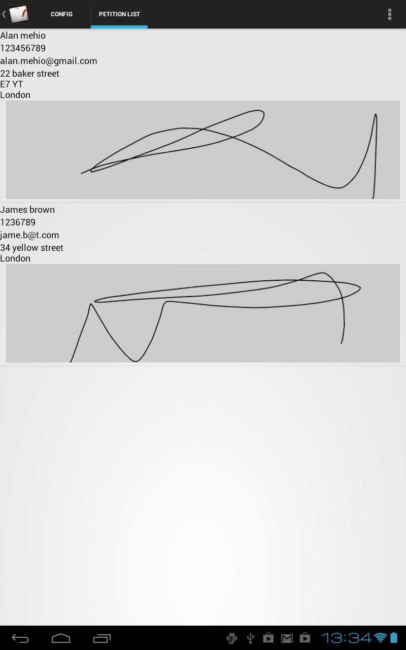 Die Anwendung kann verwendet werden, um Petition mit digitalem Mittelwert anstelle von Papier zu unterzeichnen. Es hat Umweltauswirkungen, um die Verwendung des Papiers zu verringern. Es hilft, den Verwaltungsaufwand bei der Behandlung von Petition S zu verringern. Aktivisten können mit ihrem Tablet ausgehen, um nach Signatur zu fragen.