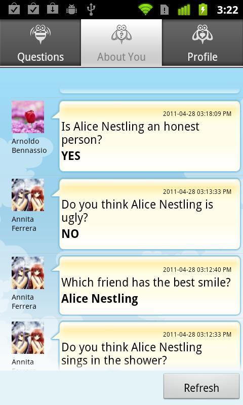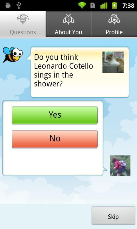 Eine der am schnellsten wachsenden Apps von Facebook ist jetzt für den Android verfügbar. Treten Sie dem sozialen Summen bei und beantworten Sie Hunderte verschiedener Fragen über Sie und Ihre Freunde. Verbinden Sie sich mit Facebook und veröffentlichen Sie Ihre cleveren Antworten direkt an Ihre Wand. Und wenn Sie möchten, was Ihre Freunde von Ihnen denken, laden Sie sie ein, sich dem Summen anzuschließen und die Bohnen zu verschütten. Ist es nicht an der Zeit, dass die Wahrheit herauskam?