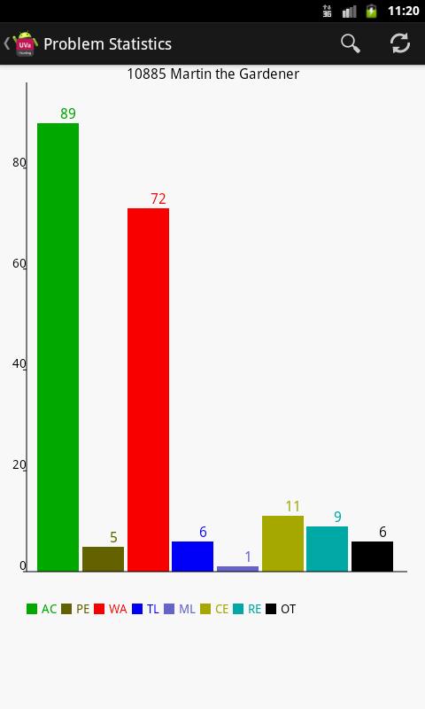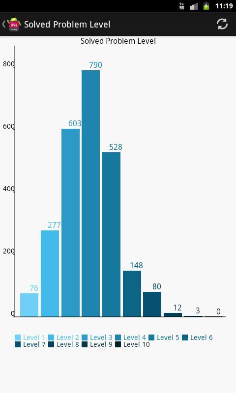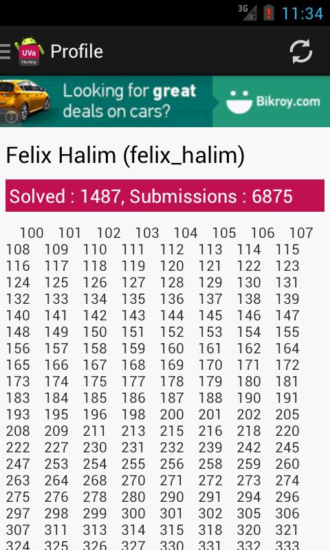 Dies ist eine Drittanbieter-Android-Anwendung für die beliebte Website uHunt , die ein komplementäres Tool für den UVA-Online-Richter ist, der Statistiken aufbewahrt, eine Auswahl der Probleme bereitstellt und eine Web-API für andere Webentwickler enthüllt, die darauf aufbauen können. Diese Anwendung wird von uHunt Web API betrieben.
