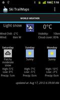 Zwei Symbole erscheinen oben auf dem Bildschirm mit jedem Karten -Download. Wenn Sie auf den schneebedeckten Knopf gedrückt werden, können Sie aktuelle Schneeberichte für das von Ihnen angezeigte Resort erhalten. In ähnlicher Weise können Sie mit der jüngsten Prognose des Gebiets im Resort des Gebiets sehen, was das Wetter im Resort des Gebiets tut.