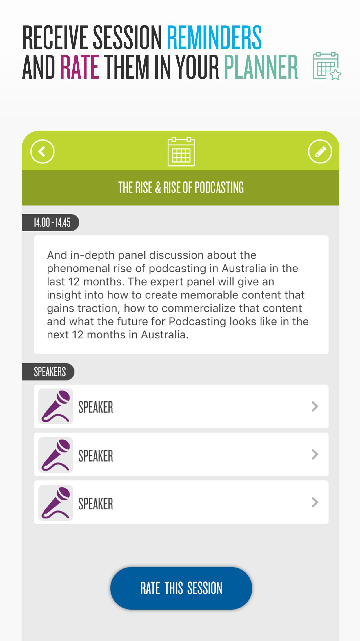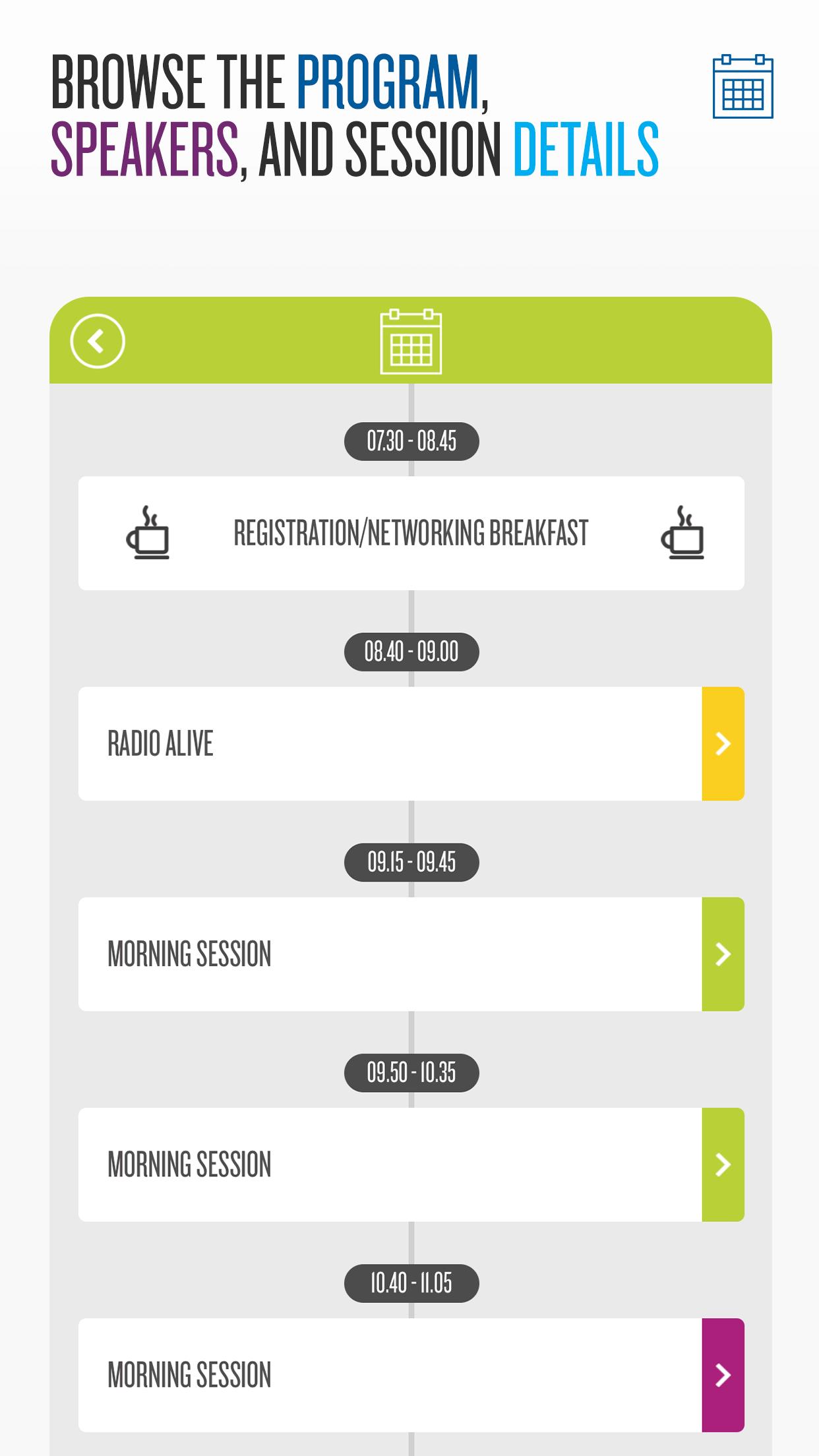 - Durchsuchen Sie das Programm oder die Sprecher und fügen Sie Ihrem Planer Sitzungen hinzu