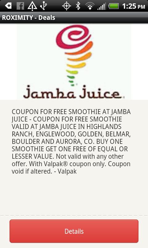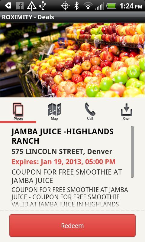 Stellen Sie sich vor, es ist Mittag und Sie sind hungrig nach Mittagessen. Wenn Sie in der Nähe Ihres bevorzugten Sandwich -Spots fahren oder an diesem neuen Burger -Ort vorbeigehen, benachrichtigt Ihr Telefon Sie vor einem Angebot für 1/2 Rabatt auf eine Vorspeise oder eine kostenlose Bestellung von Pommes. ROXIMITY delivers personalized offers to you when and where you want them.