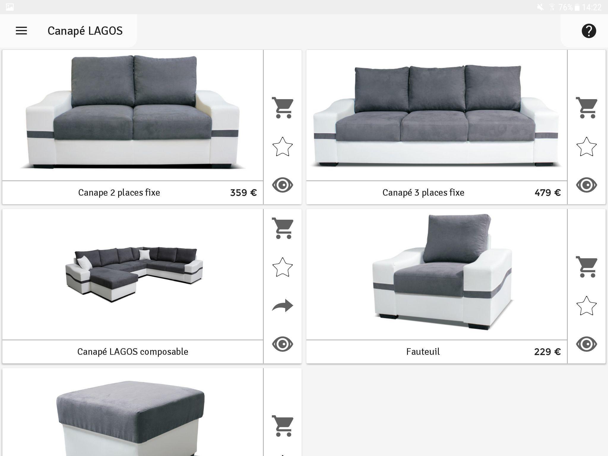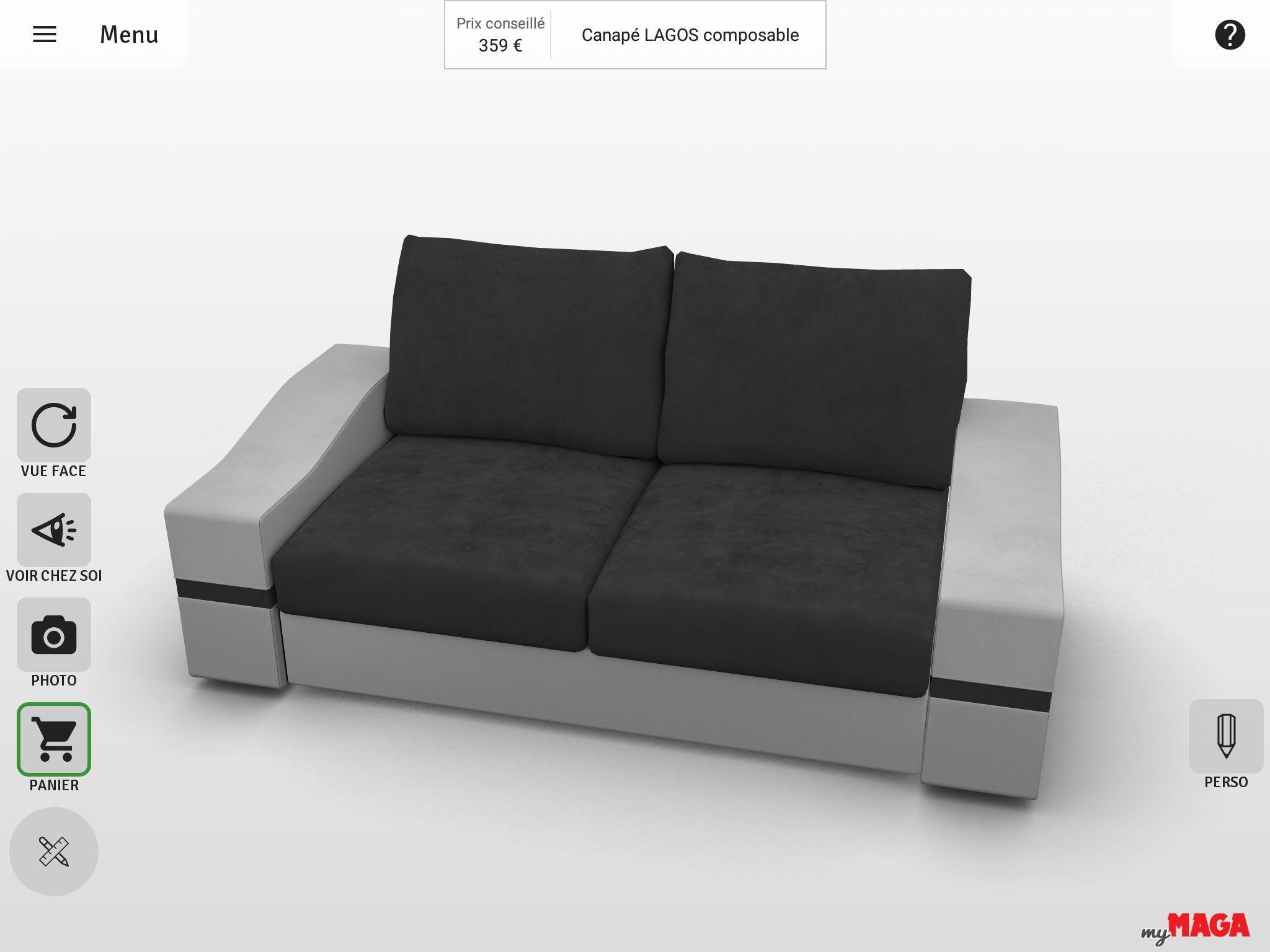 Dank der MyMaga -Anwendung und der Augmented Reality visualisieren Sie Ihr Lagos -Sofa direkt in Ihrem Wohnzimmer. Und personalisieren Sie Ihre Lösung nach Ihren Wünschen (Farben, Dimension, Cabrio ...)