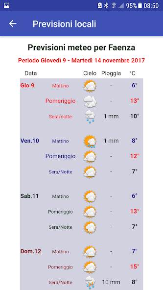 Die Anwendung gibt Informationen in Echtzeit über Wetter-Umweltdaten, offene Apotheken, Nachrichten, Shows für die Stadt Faenza