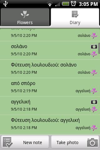 Jedes Mal, wenn Sie eine neue Blume pflanzen, können Sie sofort eine Notiz daraus machen. Die App behält den Namen, den Anpflanzendatum und die Details der Veranstaltung bei. Optional können Sie ein Bild hinzufügen. Wenn die Pflanze wächst, können Sie Noten von Blühendaten und neuen Bildern hinzufügen. Mit der Zeit werden Pflanzen hinzugefügt und entfernt, wodurch eine Zeitleiste und ein Protokoll des Gartens angegeben werden.