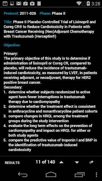 Das Barbara Ann Karmanos Cancer Institute in der Mitte der Stadt Detroit, Michigan, stellt eine kostenlose App für Android-Telefone und -Tablets zur Verfügung, die detaillierte Informationen zu den klinischen Studien mit offenem interventionellen Krebs liefert.