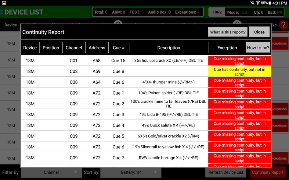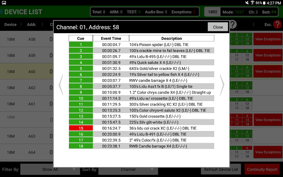 Manuelles Schießen - Eine komplette Benutzeroberfläche für manuell abgefeuerte Shows. Fügen Sie eine Show -Uhr, eine Feuerhistorie und die Fähigkeit, Hinweise mit definierten Kalibern und Kuchen zu kennzeichnen.
