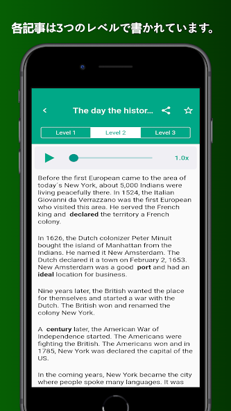 Days in Levels ist eine Bewerbung, um Ihr Englisch auf natürliche und schnelle Verbesserung mit unseren Artikeln zu verbessern. In unseren kurzen Artikeln verwenden wir Wörter, die häufig in Englisch verwendet werden.